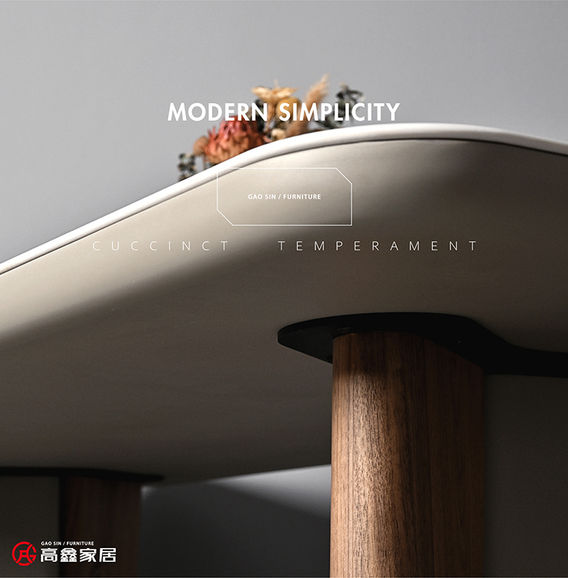 北歐輕奢風格設計,也可輕鬆搭配目前最行的中古風,整體使用複合材質來做搭配,低調簡約不誇張。桌面採用整塊天然原石來做表面加工成的微晶石,比較不一樣的是,桌面採用加厚到5CM的圓弧角設計,使更耐刮、耐磨、耐高溫與耐重。桌腳則使用溫暖的奶茶色調烤漆來搭配胡桃木紋,使整體色調更輕鬆融入各種用餐空間。